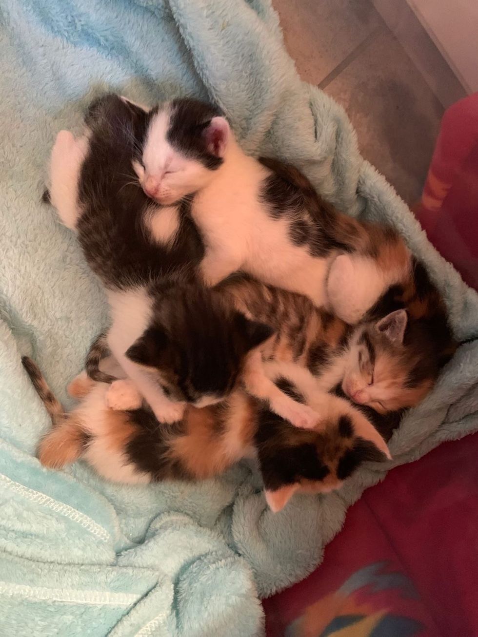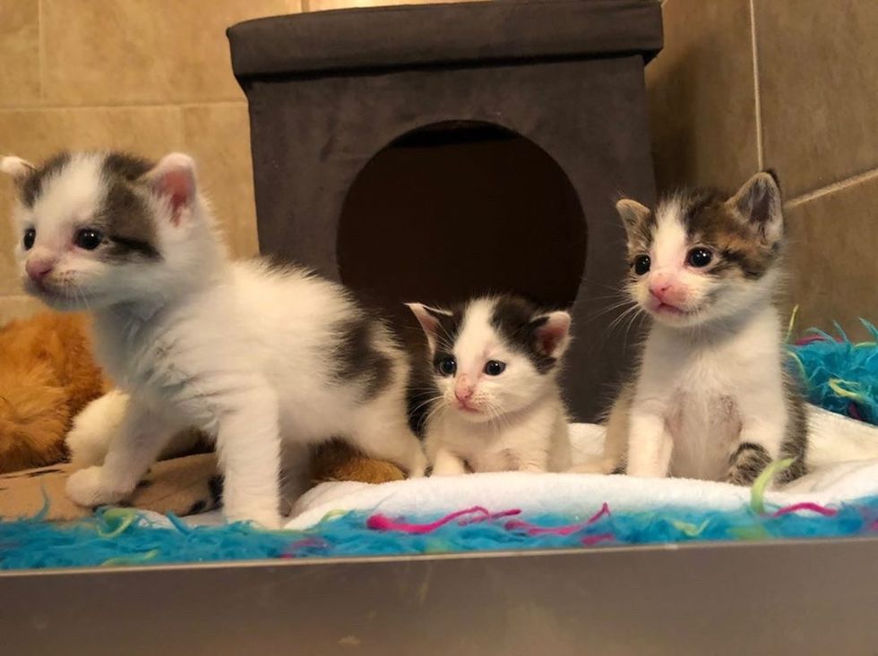 The kittens quickly settled into their new abode. They got a much-needed bath and a full belly.