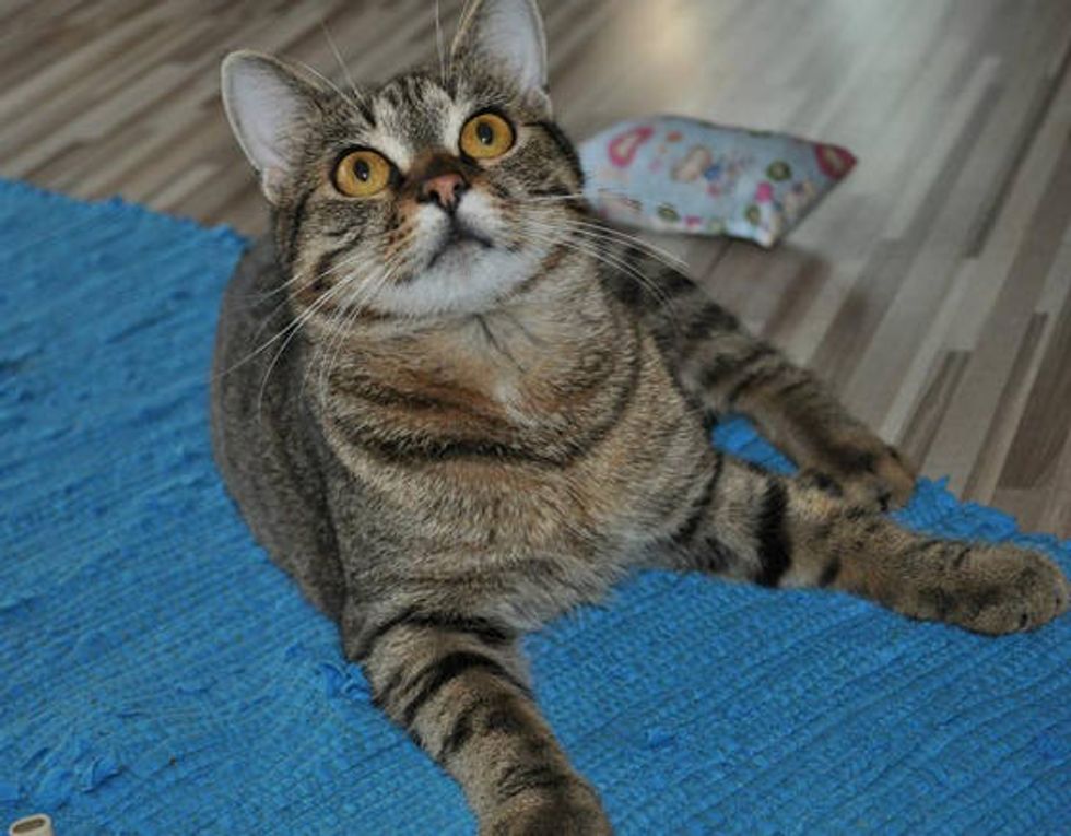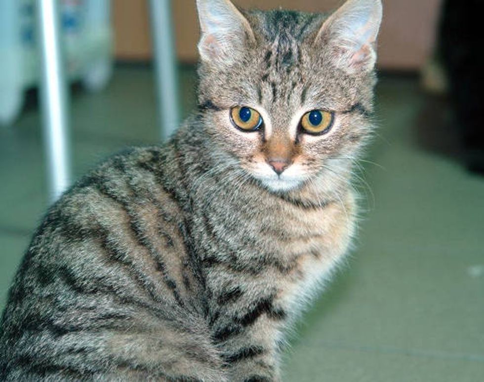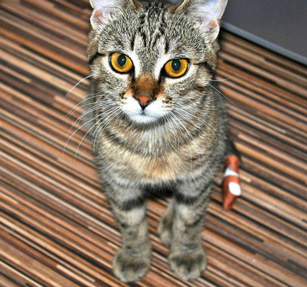 "Last year in March, I fell in love with a picture of a little cat with beautiful big brown eyes... They found him in an area frequented by homeless people. He laid on the ground and couldn't walk or stand up," said Iris.