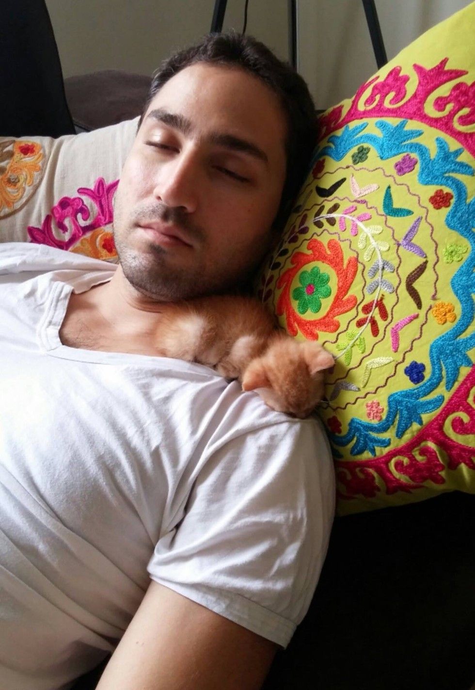 Semsom returns the favor by napping on his shoulder.