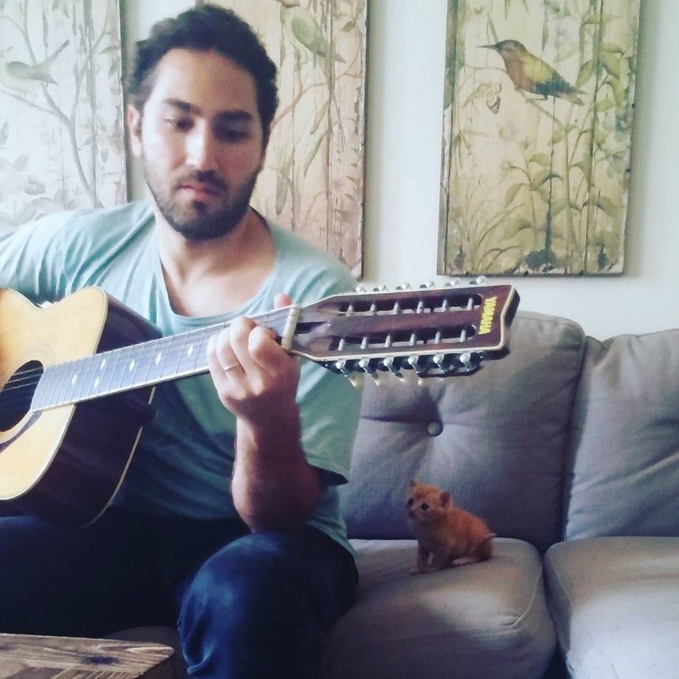 His human dad is also smitten with this little sweet kitten. He shows his love by serenading him a song.