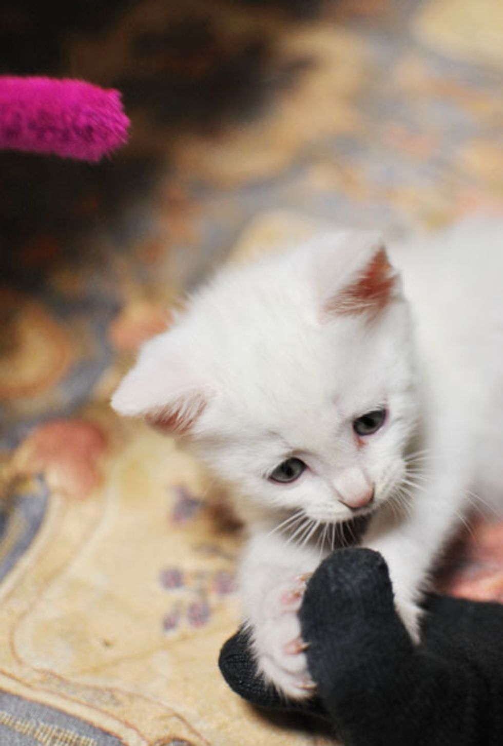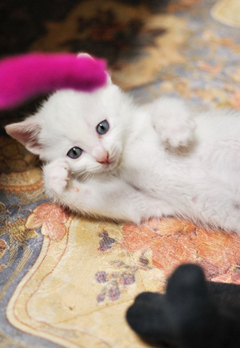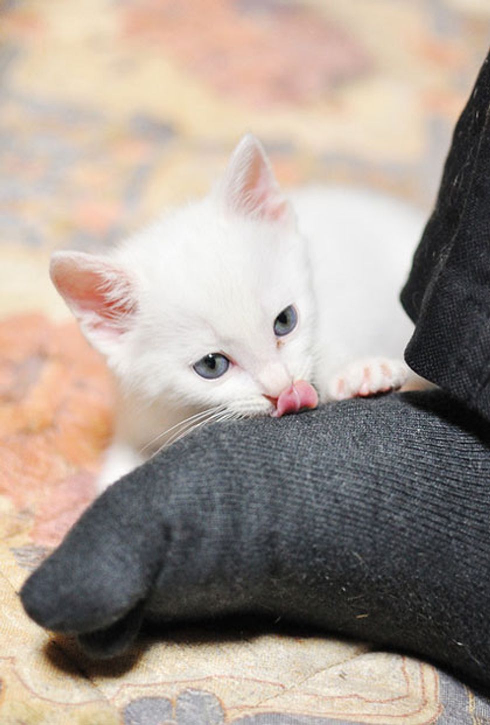 Peso is one of 3 stray brothers found abandoned when they were still tiny little babies. They were given a lot of care and plenty of food. Peso loves wiggly toes and will try to stop them from wiggling. Once they are "tamed" he will give the big foot a bath.