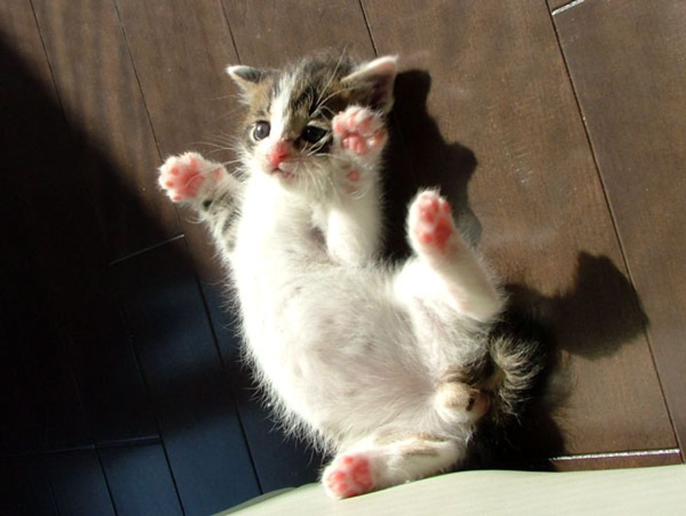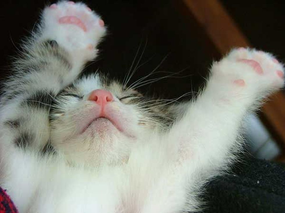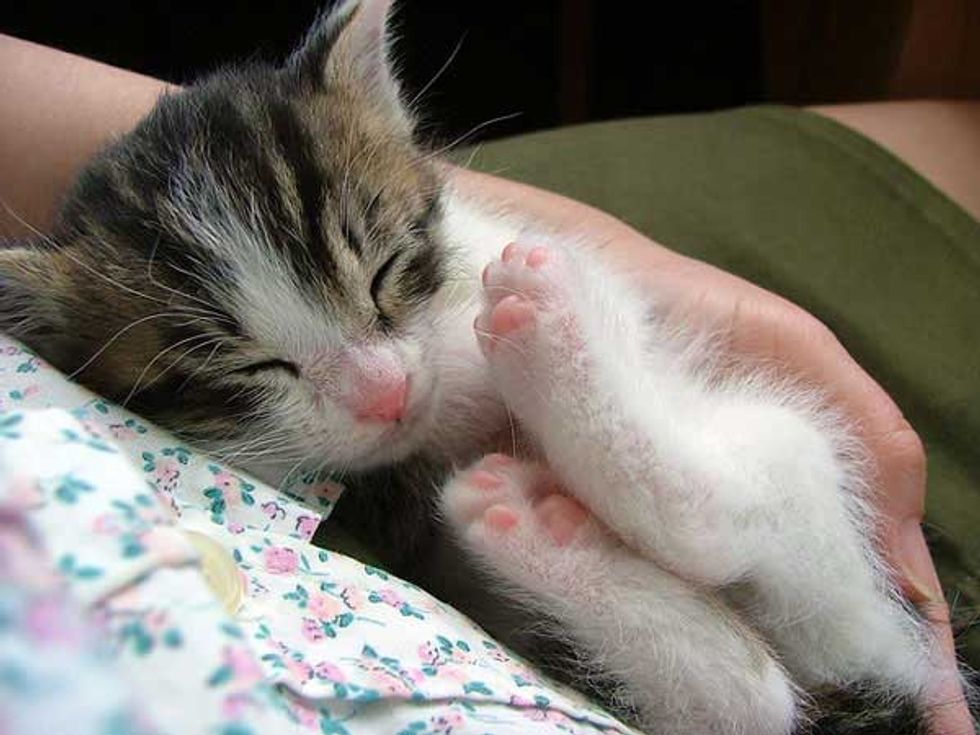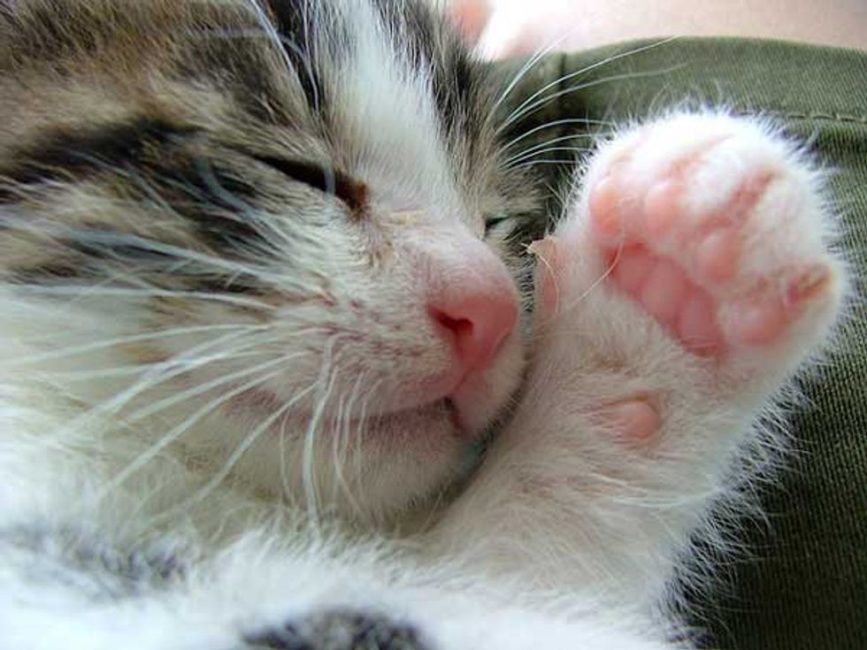 Little Pete knows exactly how to tug at his humans' heartstrings. Raising his cute little paws, showing off those adorable pink paw pads, not to mention he does that while dozing off on their lap. There is no surprise why his humans give in to his every whim.