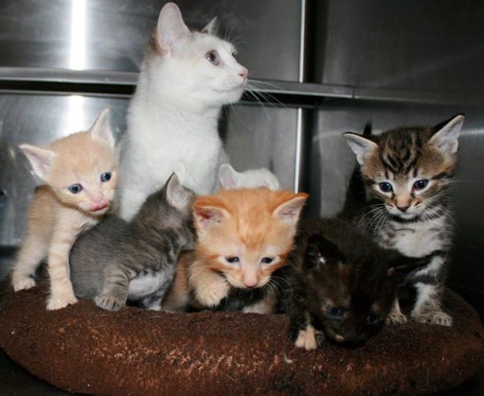 A pregnant stray cat gave birth to three beautiful kittens at the Potsdam Humane Society in Potsdam, New York, but now she's nursing six very hungry kittens and caring for them like a champ!