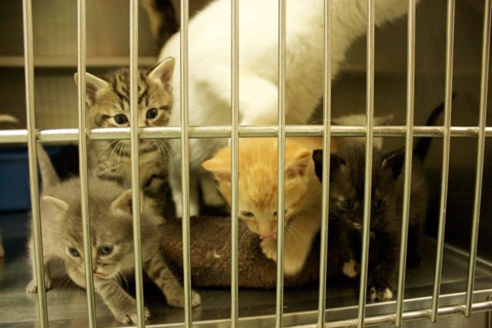 Both groups of kittens are four weeks old and they will be available for adoption in about four weeks.