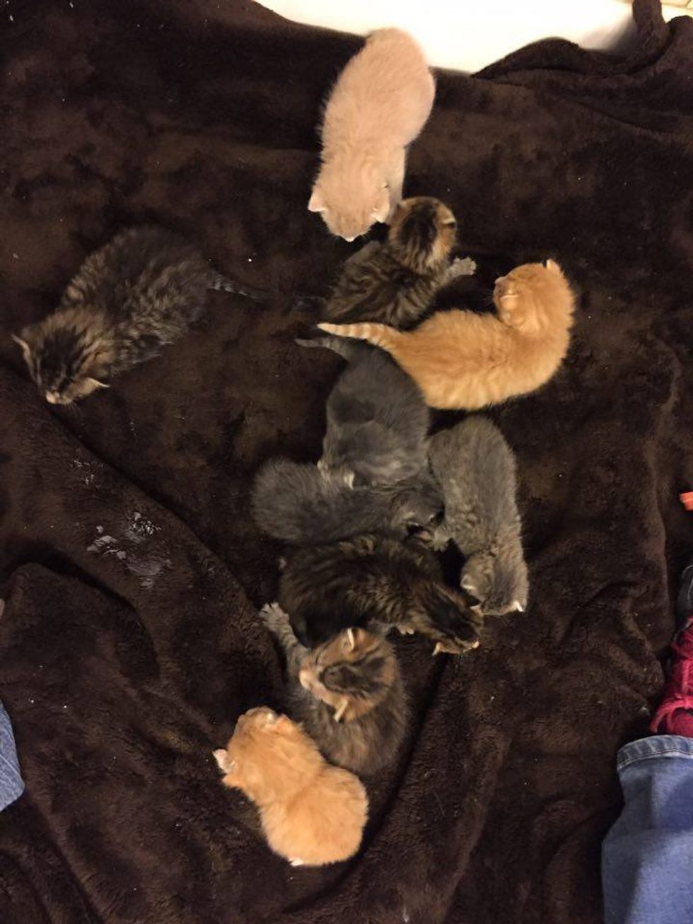 On the same day Slurpee came to the rescue, 9 other motherless kittens were also brought in.