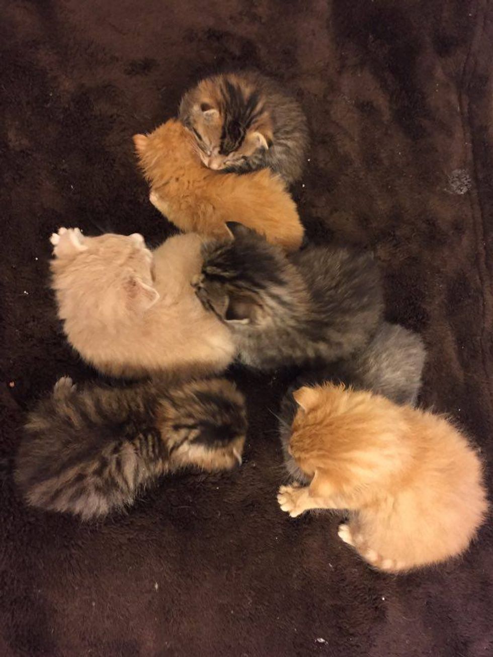 The 10 tiny fur balls are getting better every day. They purr together in a big purr pile, giving each other comfort and love.