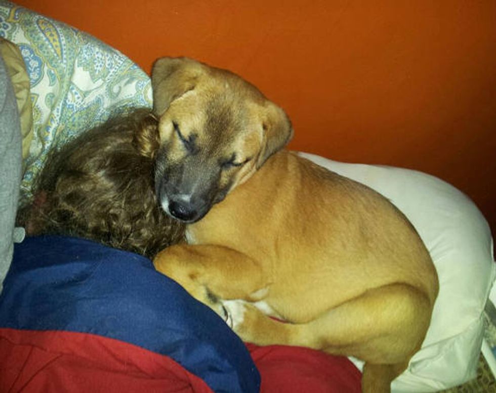 "My daughter is scared of storms and this is what our puppy did when she started crying." (imgur)