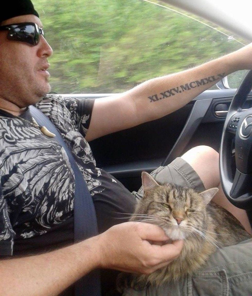 During a car ride with her human, Dino. "Sassy never left that spot much!"