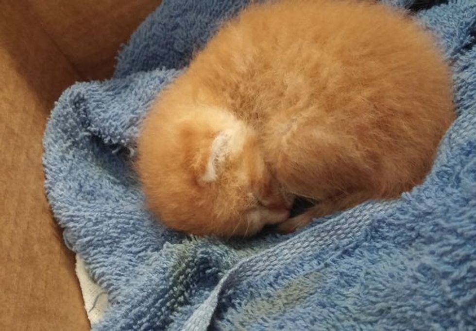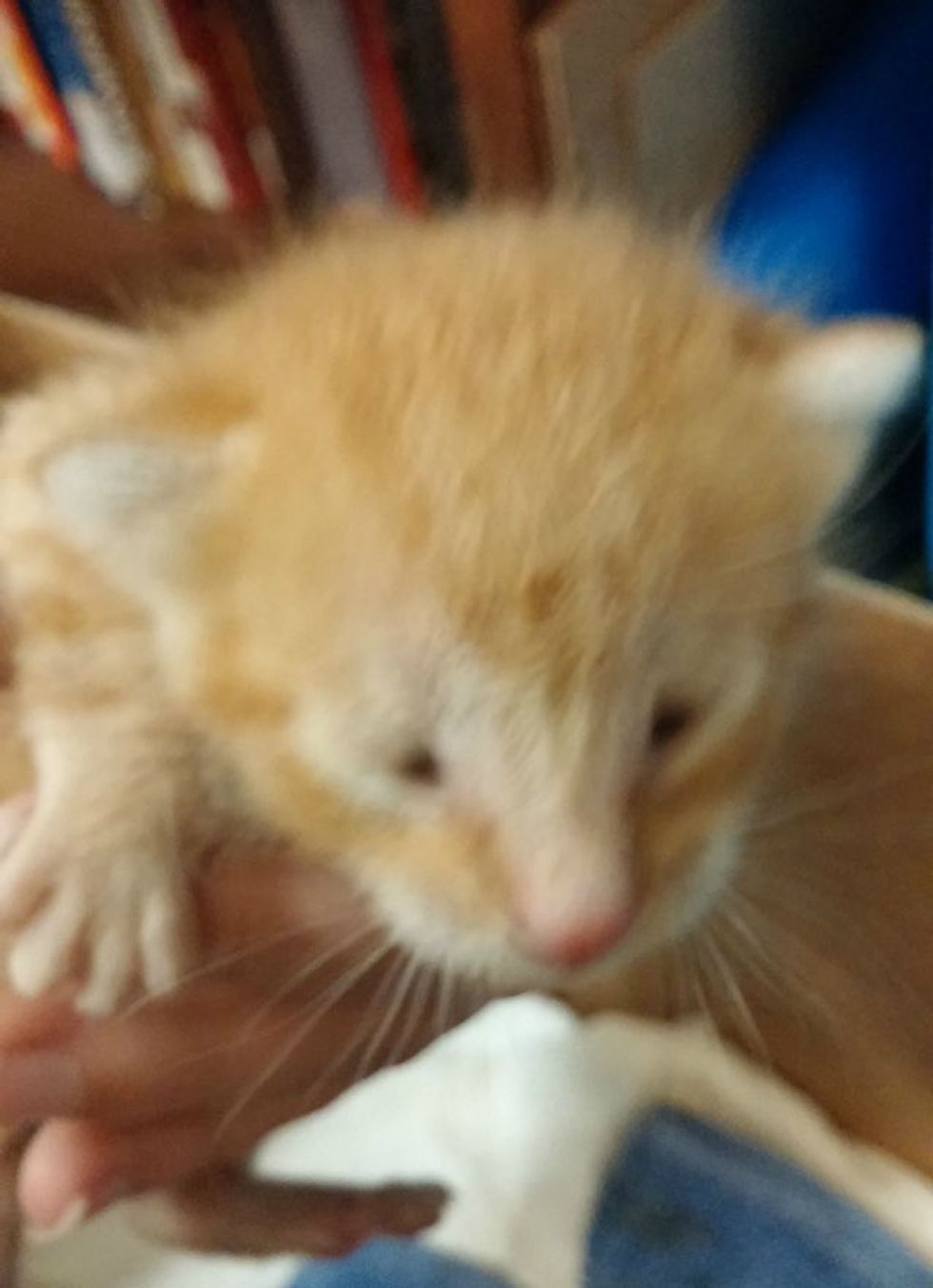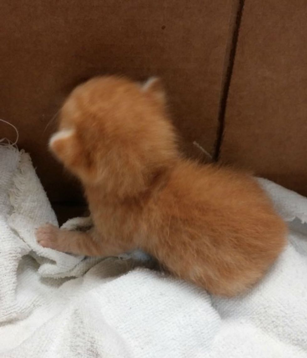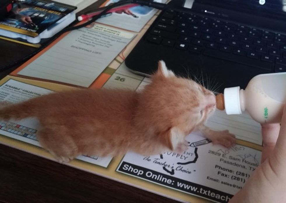 A tiny orphan kitten was found when he was just a few days old. "Another teacher at my school found this baby in her back yard, and I said I'd take care of him. My students named him Simba," Simba's human wrote via imgur.