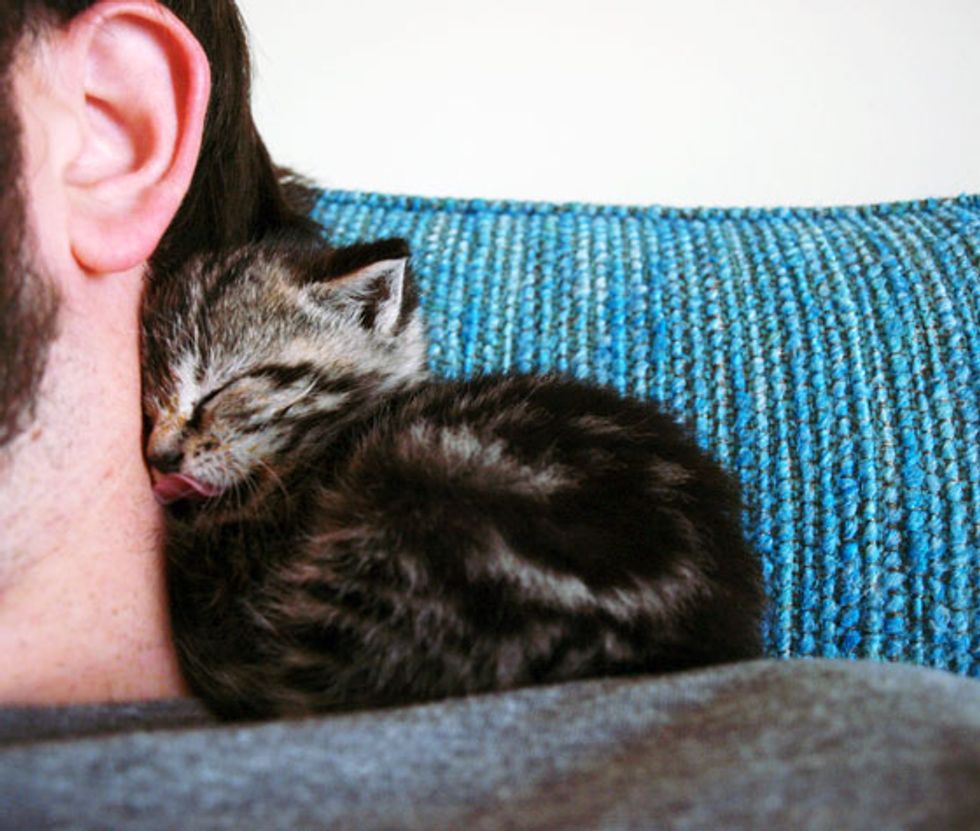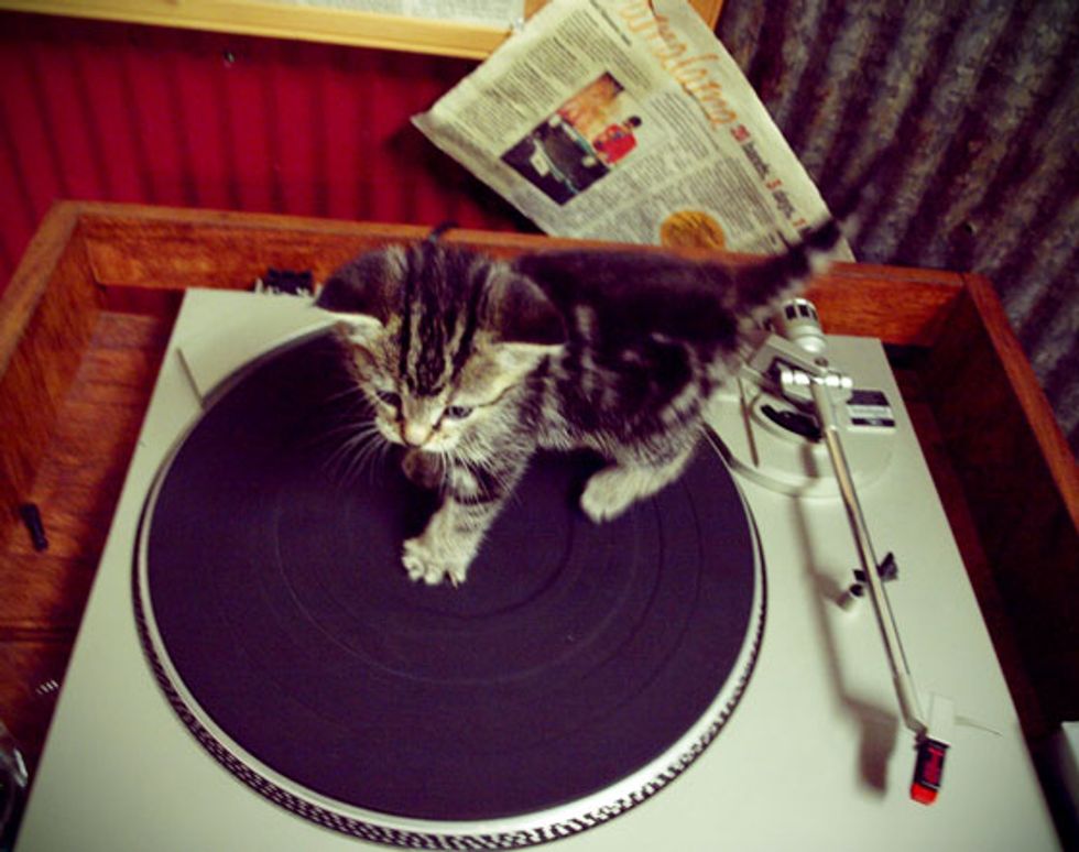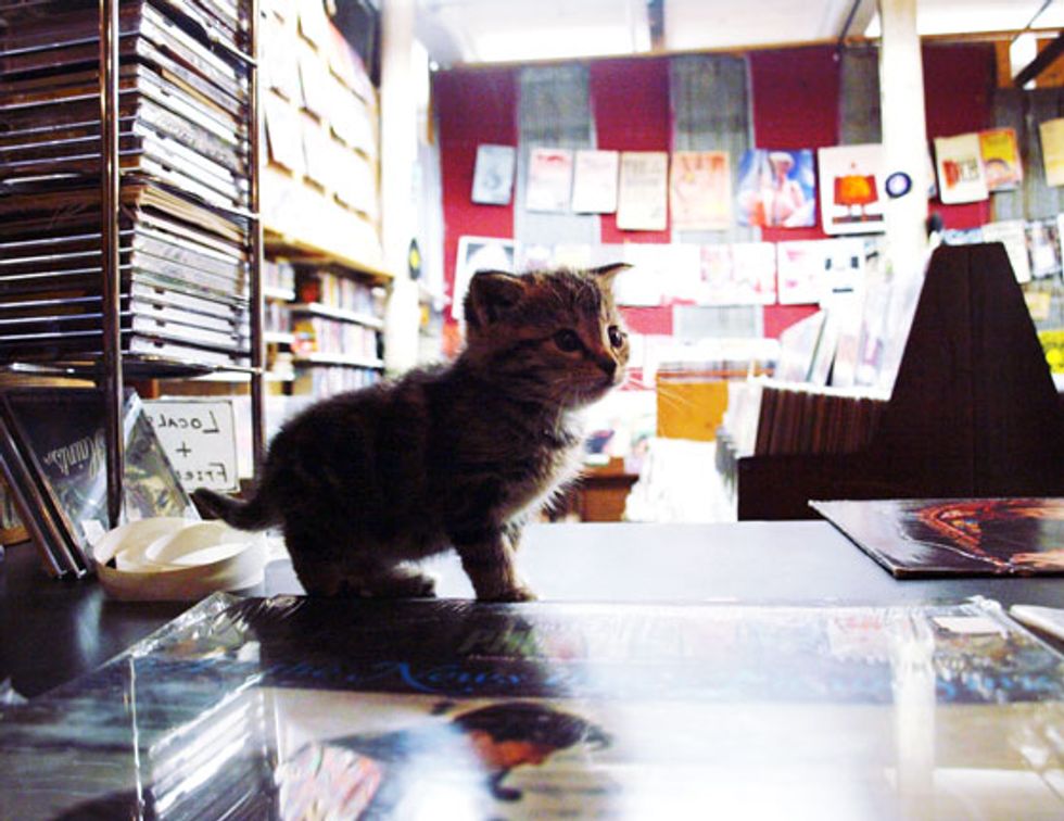 Tiny is a little record store kitty who not only helps around the store, she runs it. When her hooman Andy is pricing the records, she comes by to give him a paw. Sometimes she steps on an old record player to take it for a spin. By the end of the day, Tiny loves to snuggle up into her daddy's neck for a power cat nap.