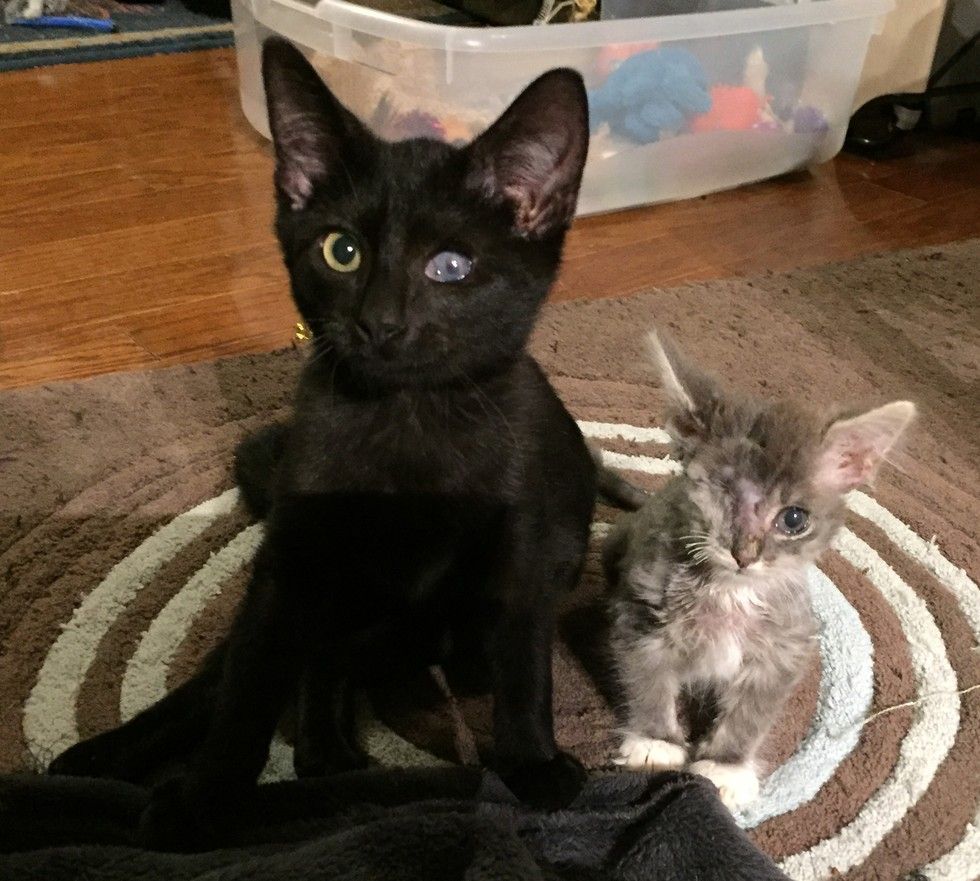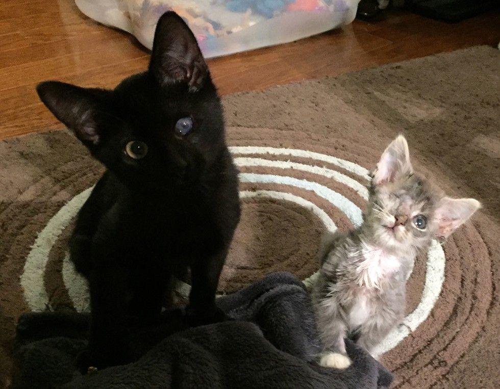 Two tiny orphaned kittens with special needs have found each other and become the cutest little besties.
