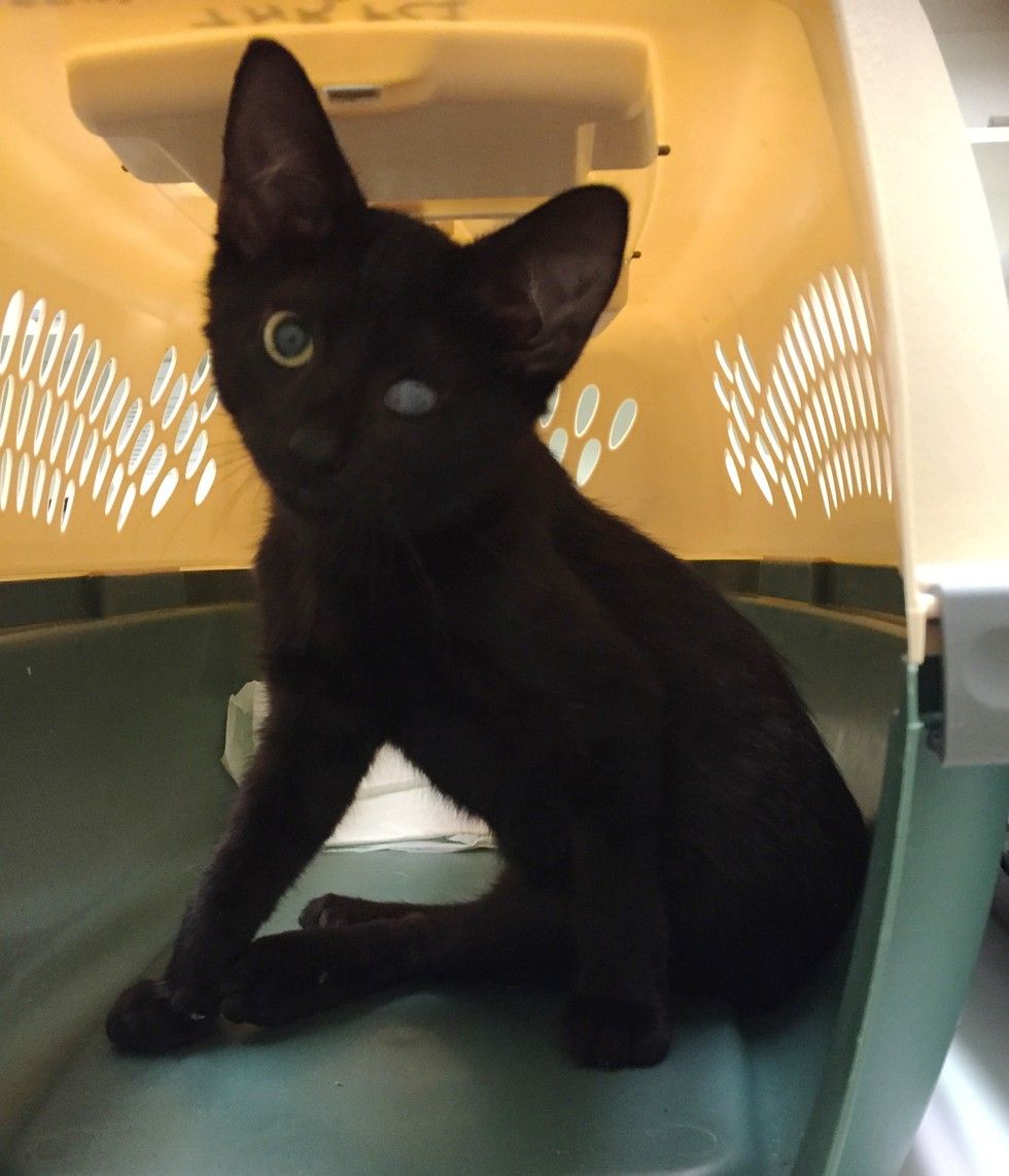 Ozzy the black kitten was born with "Swimmer's Syndrome" where he drags his hind legs to the side when he moves. One of his eyes is blind because it never fully developed. He was put in a local shelter where he was faced with an uncertain fate.
