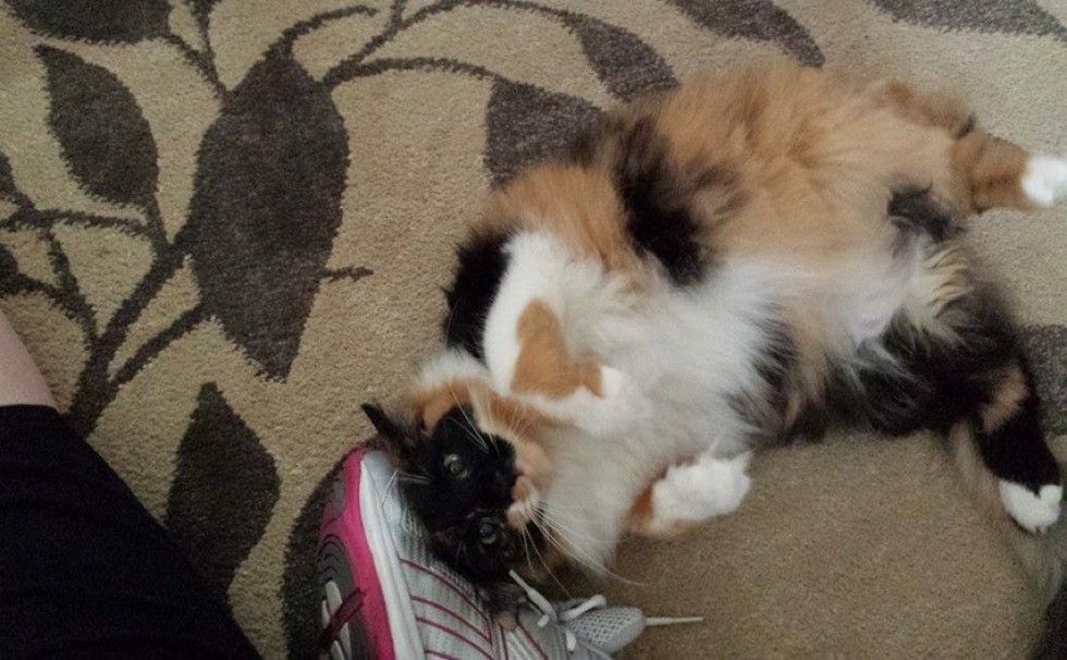 "Callie was adopted from a woman who fostered kittens for the Danville SPCA in Pennsylvania. She was the runt of the litter. The weekend she came home my wife was away at work and Callie clung to me all weekend," Steven Williams told Love Meow.