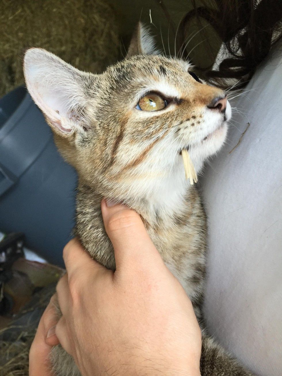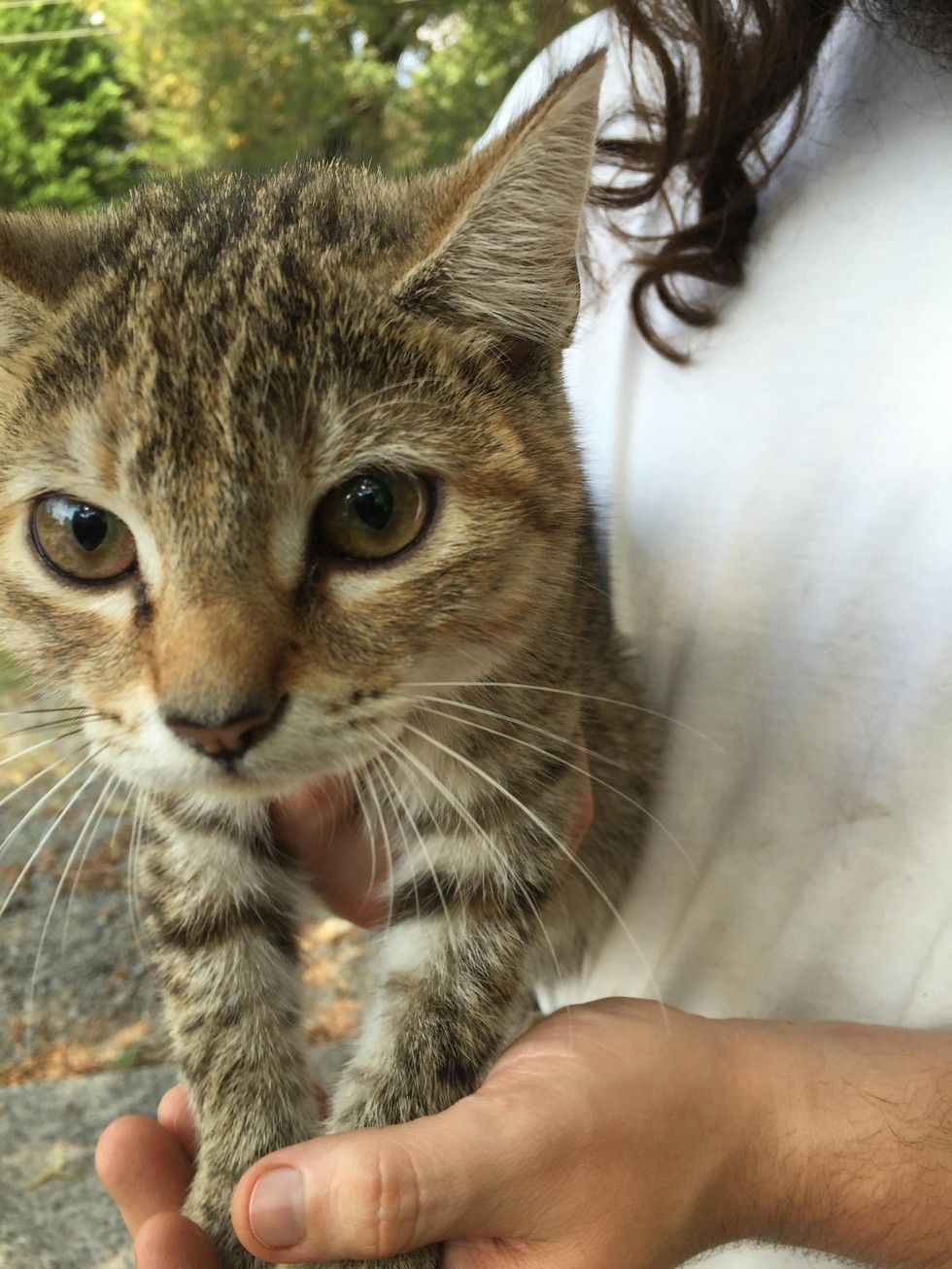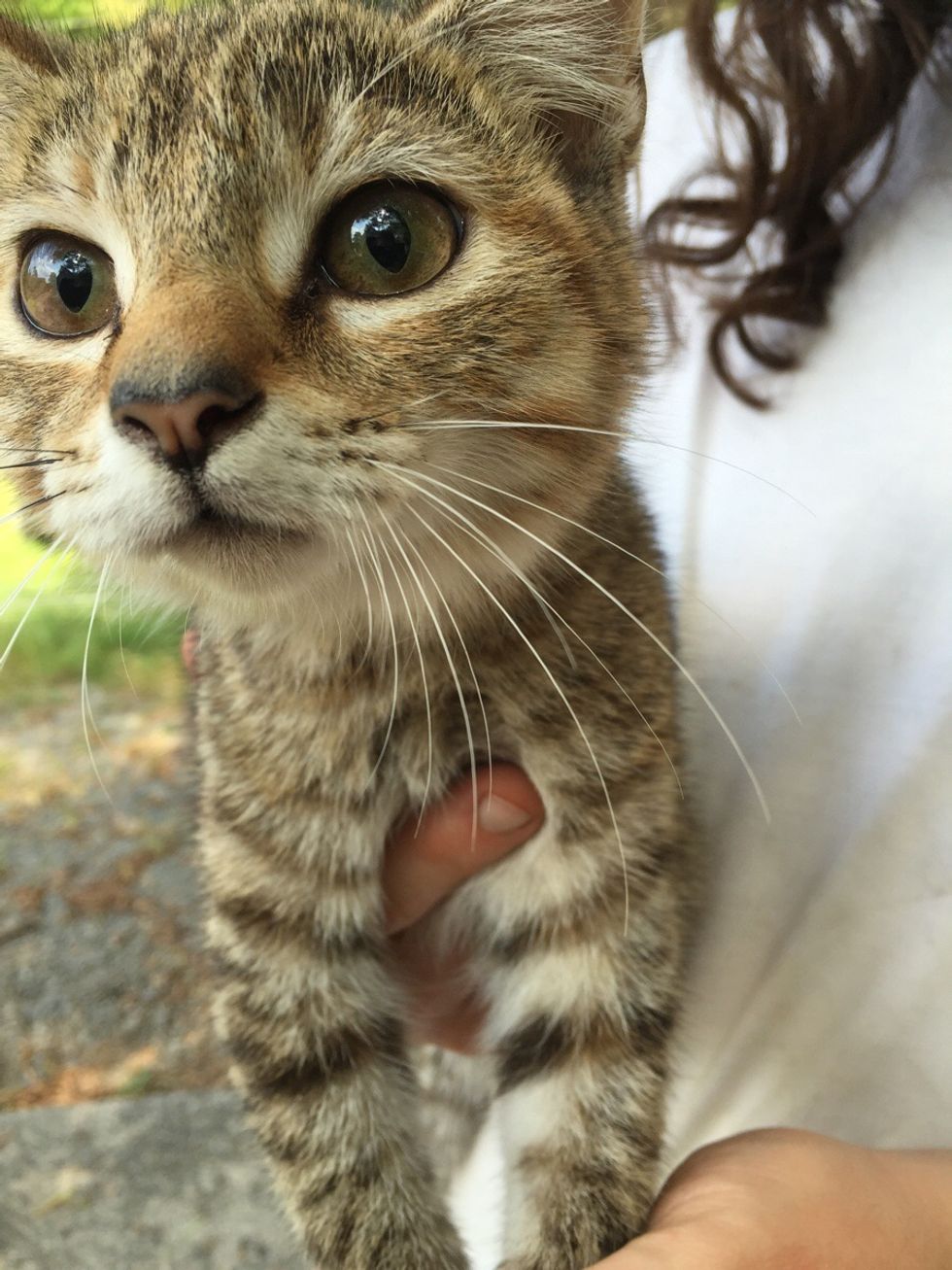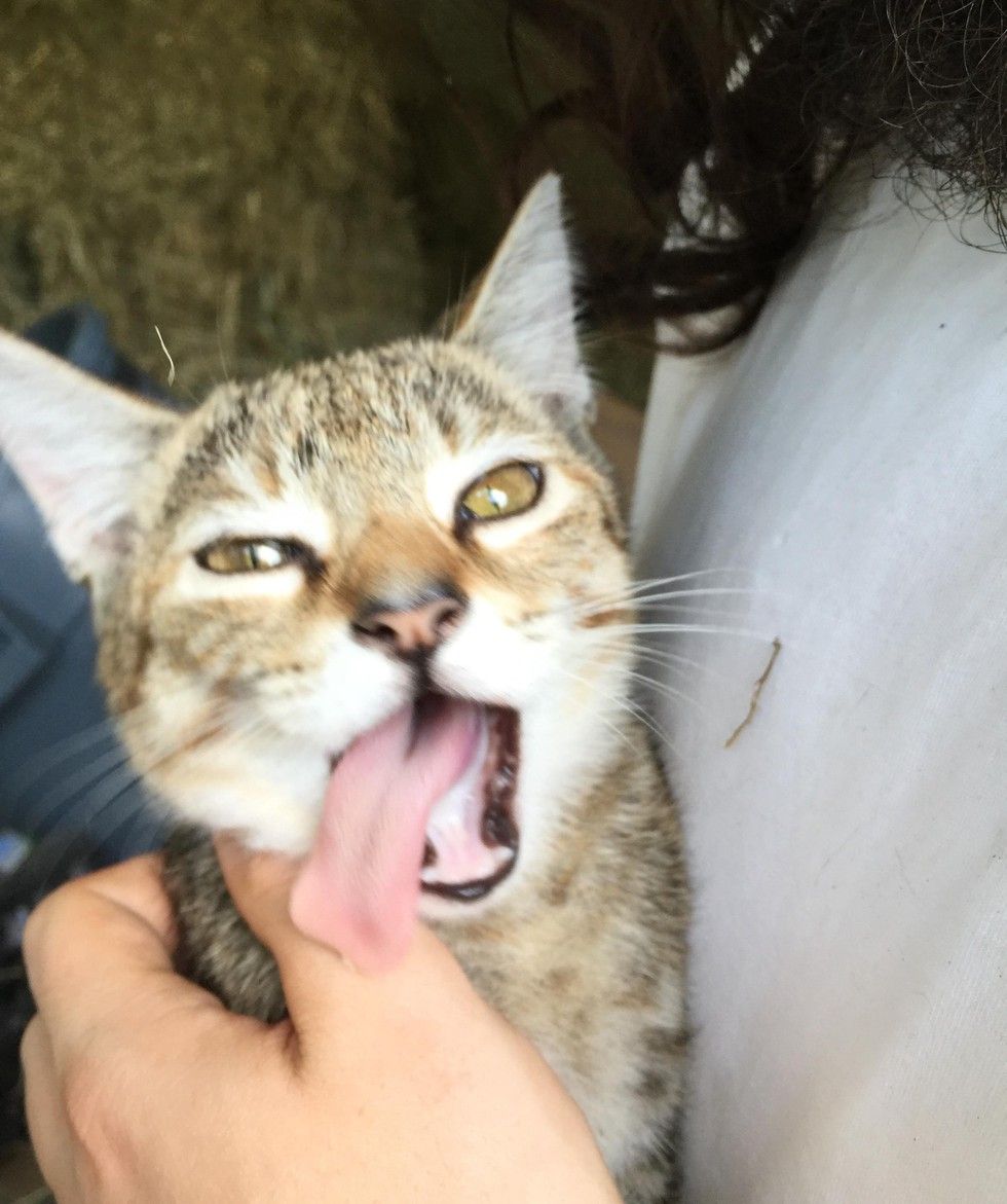 "She has an incredibly long tail and hunts like no other. We live in North Carolina and we've been joking all afternoon she is part bobcat," K8terSan said. "The coloring is very unique and has some intense stripes... she has black tips on the ends of her ears and white underneath. And huge teeth."