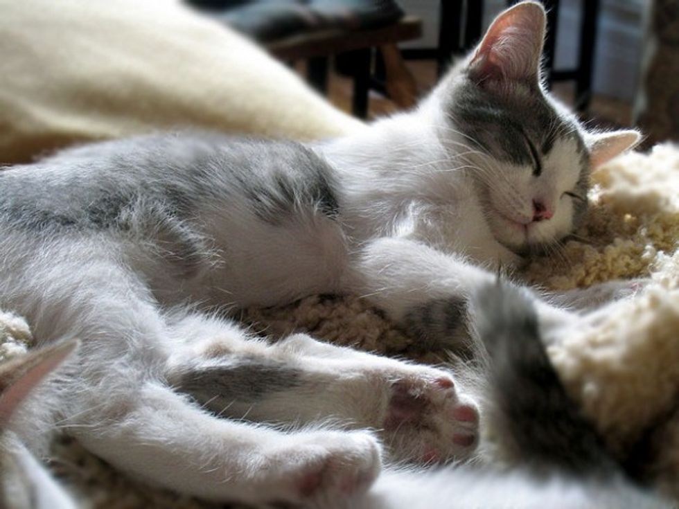 Winston on the other hand, is ruby's much bigger older brother. We call him the peacock cat as when he meows he sounds like a peacock! He is a little skittish, but is the most handsome and regal cat that ever lived. He is very eager to find the heat registers in our house, or the warm ray of sun sneaking through the window, and will spend hours just laying and lazing around. He is a purr machine, you touch him and he purrs - we think it scares him sometimes! It takes him a bit of time, but he does warm up and loves to snuggle on the bed and sometimes with Ruby when no one is looking.