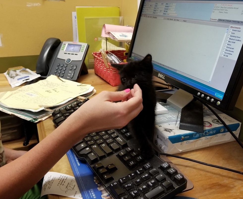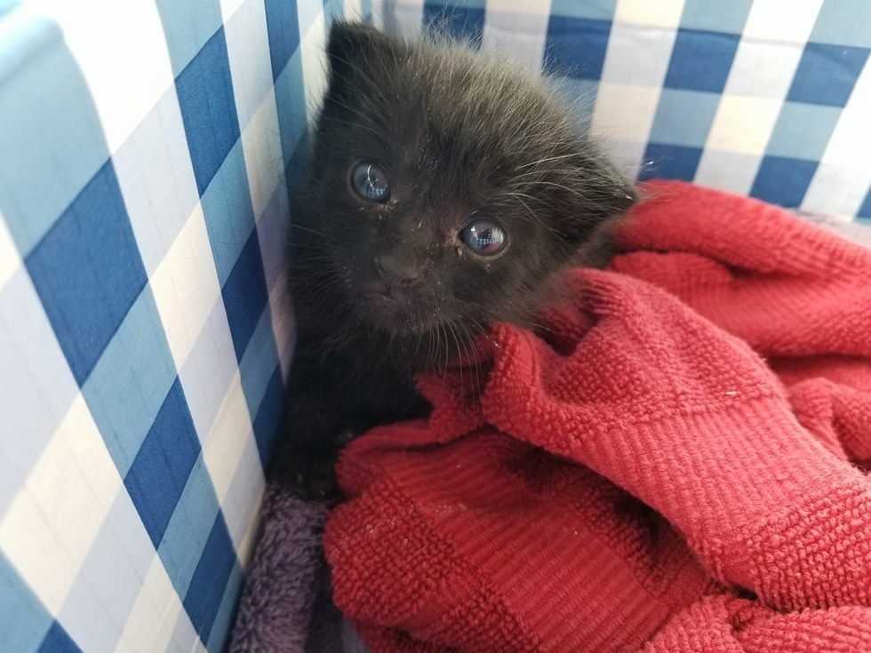 She didn't know exactly how the kitten ended up there as her yard was completed fenced in, but she knew that the kitten needed immediate care.