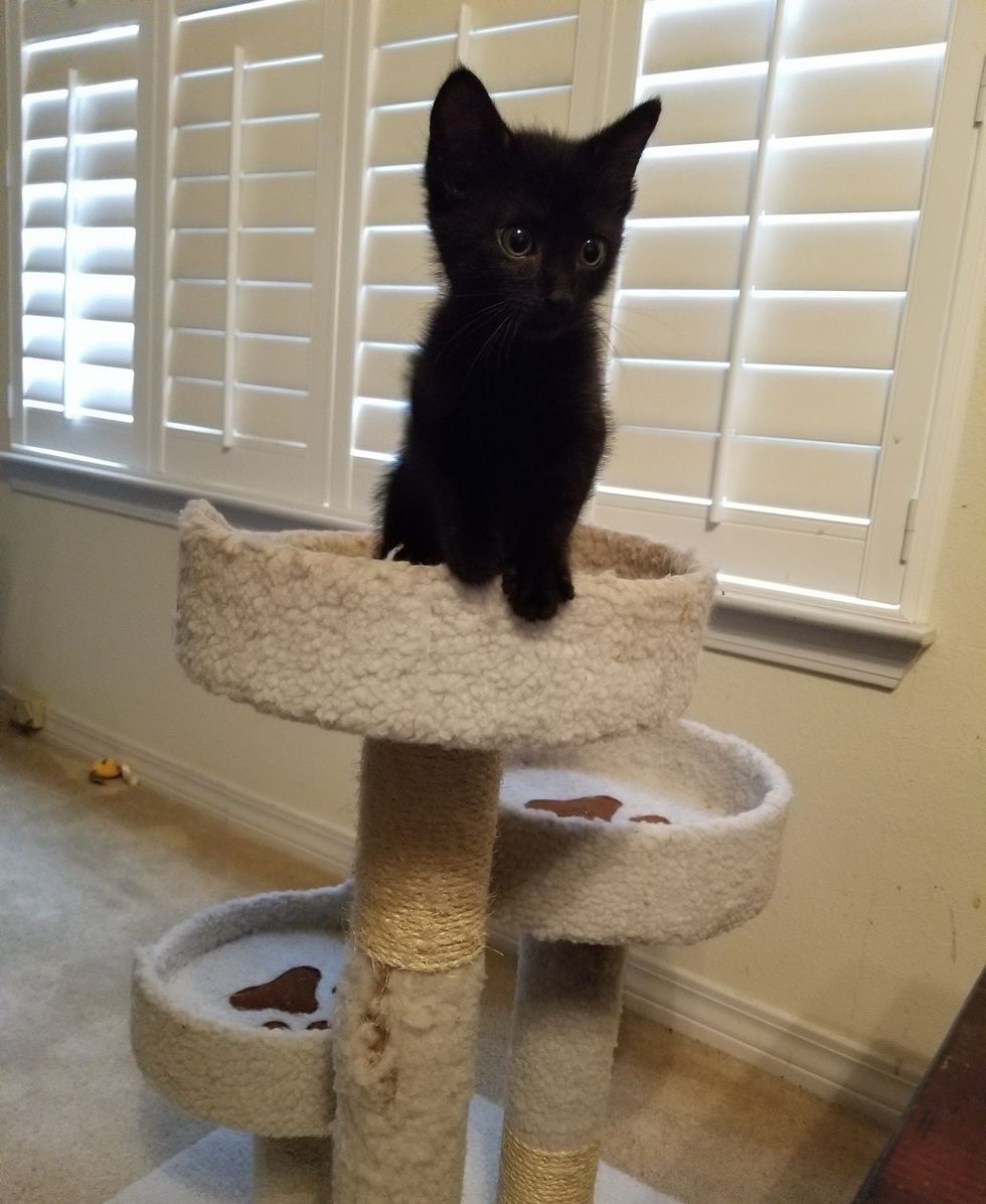 "I can't believe how quickly Kieran has grown into a beautiful sleek house panther. I may have rescued him but he saved me in return."