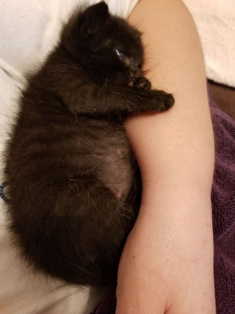 That night, the house was filled with tiny chirps as Sandi got up every two hours to feed the kitten.