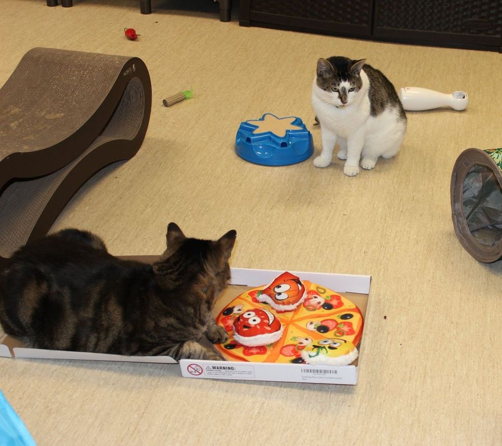 When they found out about his feline buddy at the shelter, they came back to adopt him, too.