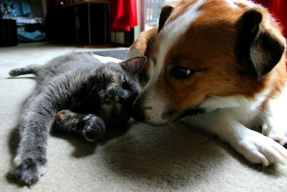 Refurb was rescued by a kind person from the Animal Humane Society in Minnesota. She was injured by a horse when she was only a month old and lost her back right leg from the accident. “The Humane Society did a great job with her and she recovered admirably well, so she’s Refurbished (aka Refurb). Just as good as a brand new model," said the human, Akslfak.