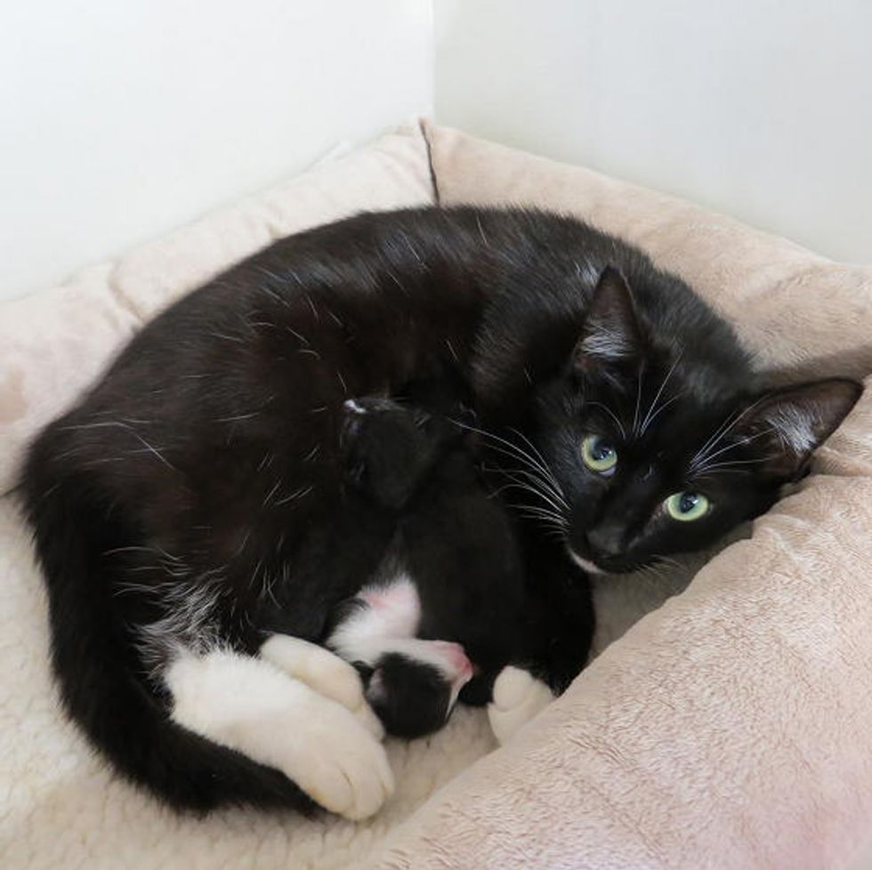 The Scottish SPCA is looking for the owner of the cat. "If you recognise May please call 03000 999 999. If we can return May and her kittens home that would be wonderful but if no-one comes forward we'll be looking to find them new owners once they are ready to be separated."