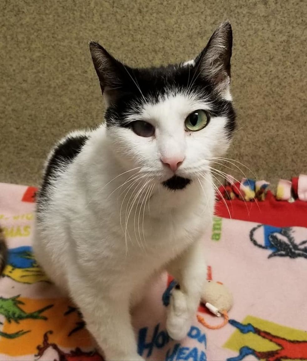 "She loves a lap to lay on. She will follow you around like a dog, and give you all her love and head bumps. She may be an older girl (around nine years old), but she has years worth of love left."