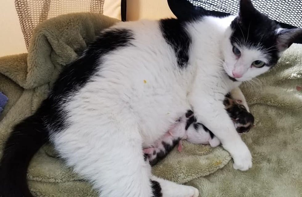 Her kittens were very premature, weighing just 1.95oz (55grams). Despite their very best efforts to save them all, only three kittens made it through birth.