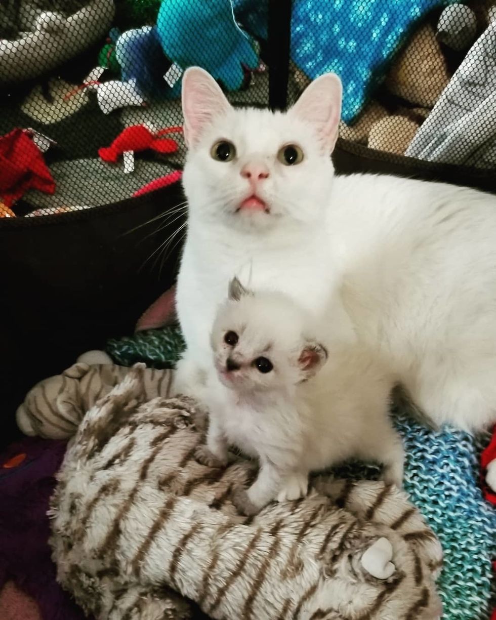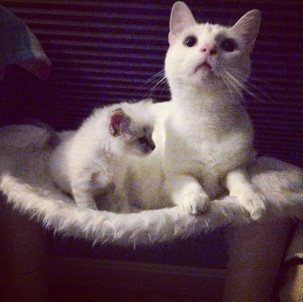 Protective Benny taught Jubilee how to be a cat and all the kitty skills.