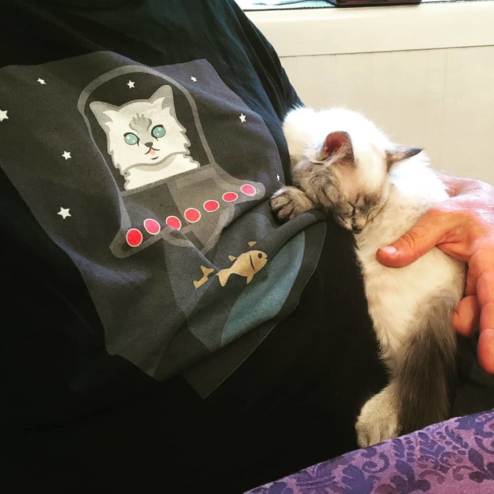 Then she got to cuddle with more foster kittens.