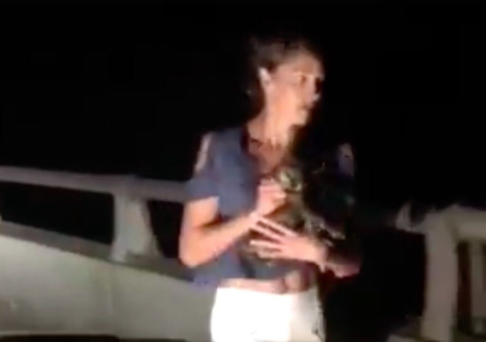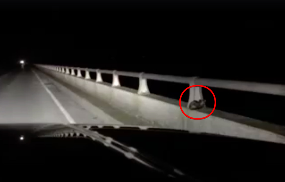 A woman spotted something alive on a bridge as they drove by. They looped around a couple of times and were surprised by what they found.