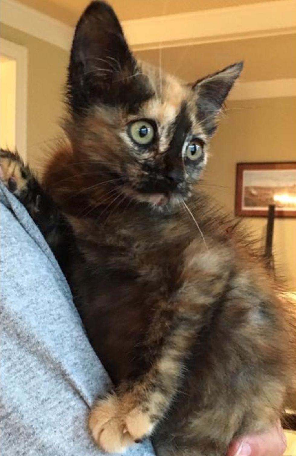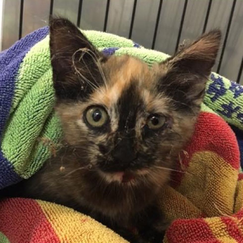 Thanks to the keen eyes of the kind-hearted woman, not only was the kitten's life saved, but the tortie found a forever home with her rescuers.