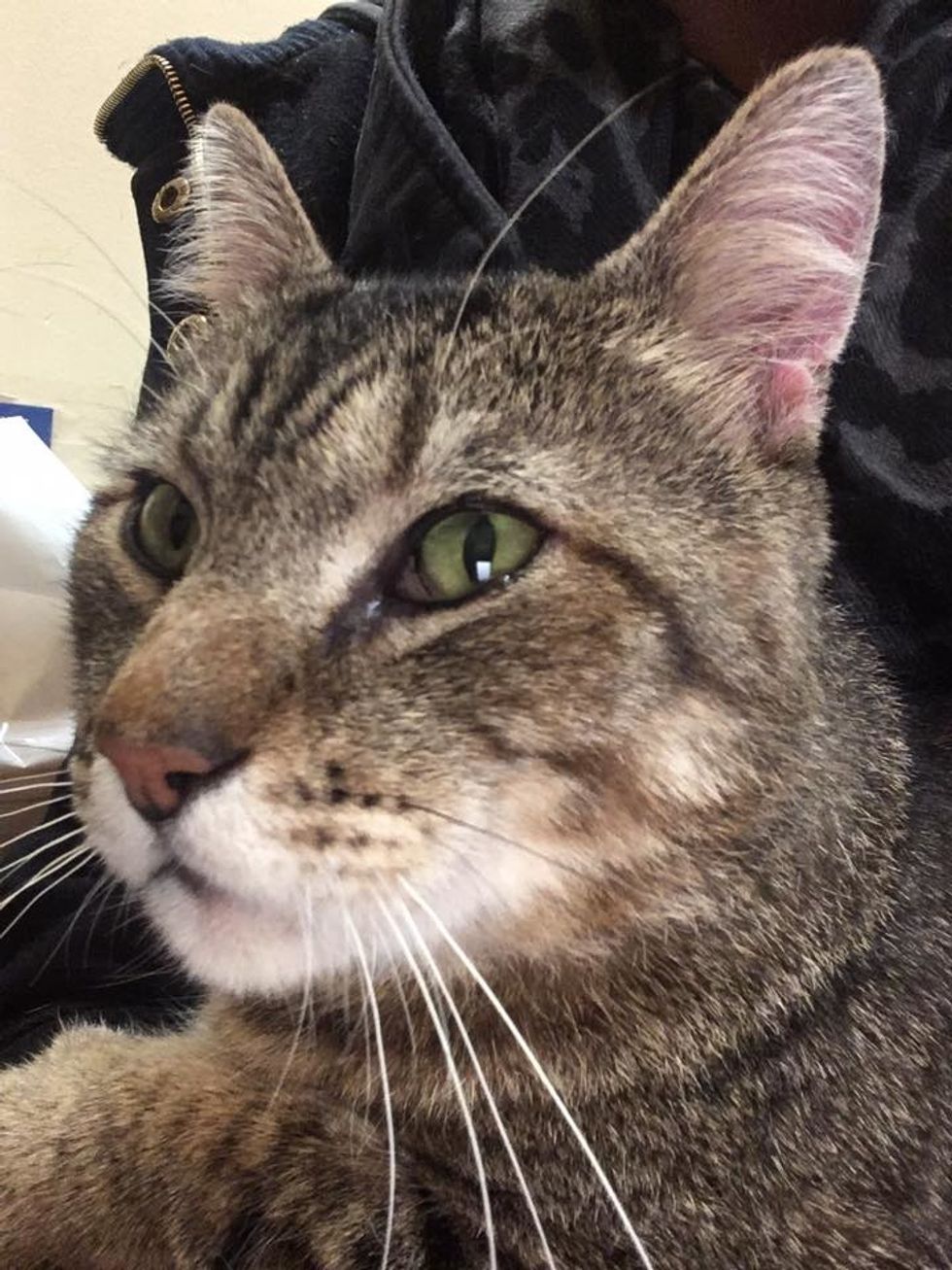 The couple posted the video of Jessica holding the tabby to a local Facebook group, hoping it would help the kitty find a loving home.