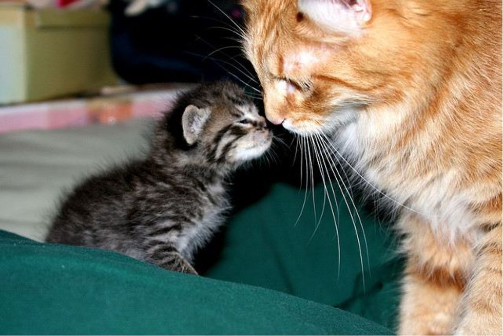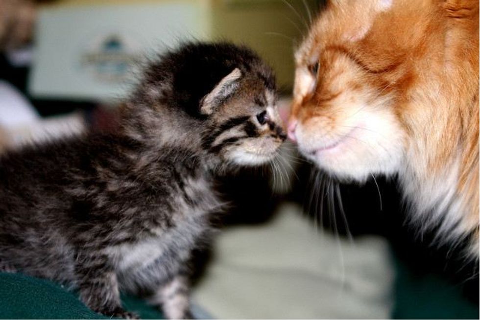 Milla the cat was welcoming a new rescued kitten to join their foster home. She was about to teach the little baby the rules of the house.