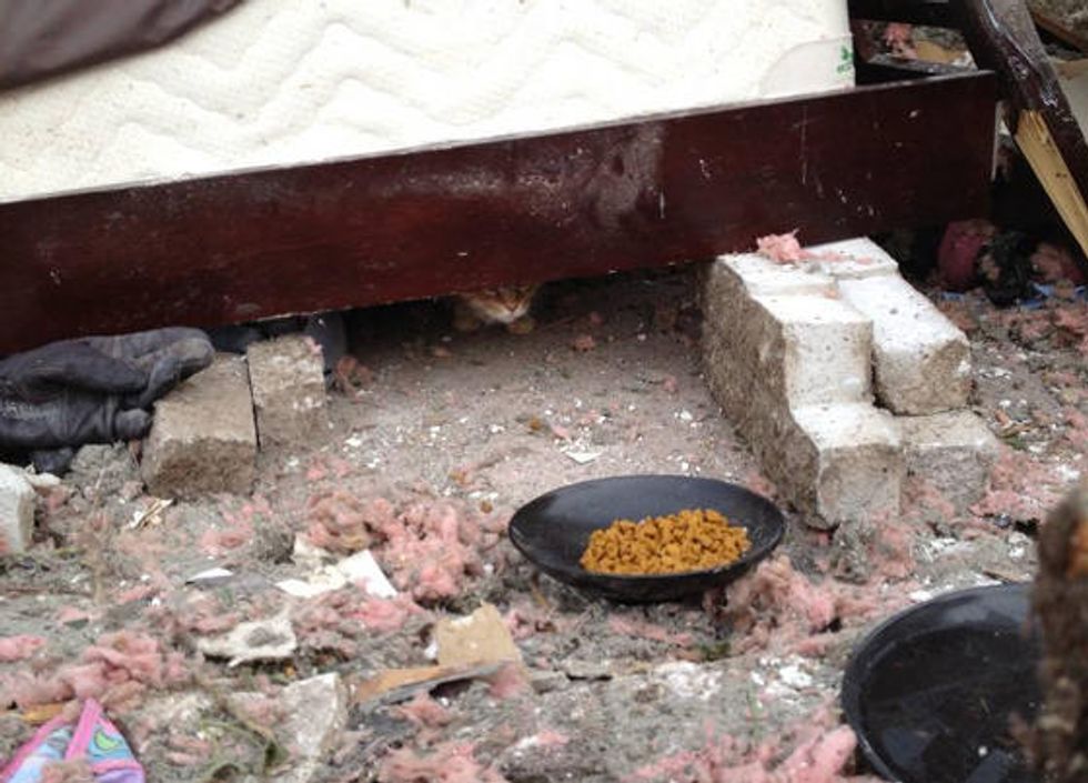When they discovered the whereabouts of the kitties, the cats "were both a little dirty, but they avoided a lot of the debris because they were under the bed," he added.