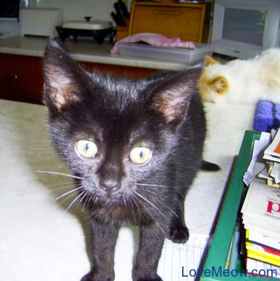 Recently Love Meow announced the first Lolcat contest from which I received an entry from Karen of a kitten that I had never seen before. It was a beautiful black kitty that immediately warmed my heart with her gorgeous big eyes and adorable big ears.