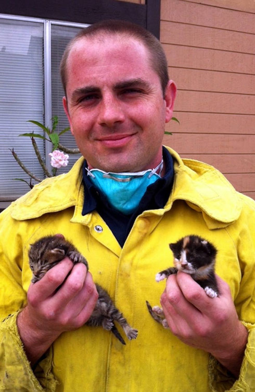 The kittens were named "Flame" and "Cinder" in honor of their rescuers.