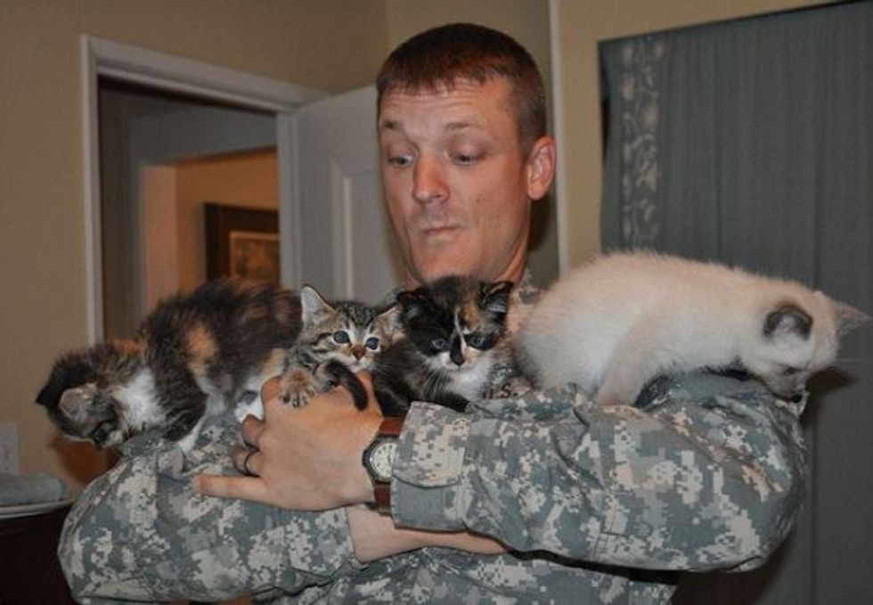 Theo who was a US soldier stationed in Tacoma, took time from his duties to visit a group of foster kitties from the Itty Bitty Kitty Committee and give the love and attention they needed before heading to their forever homes.