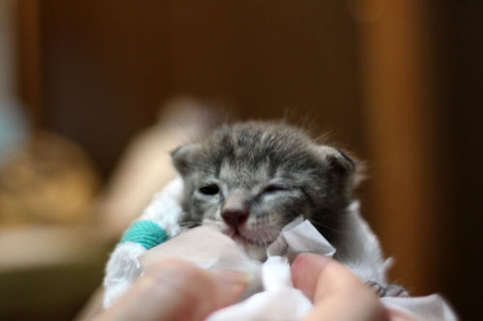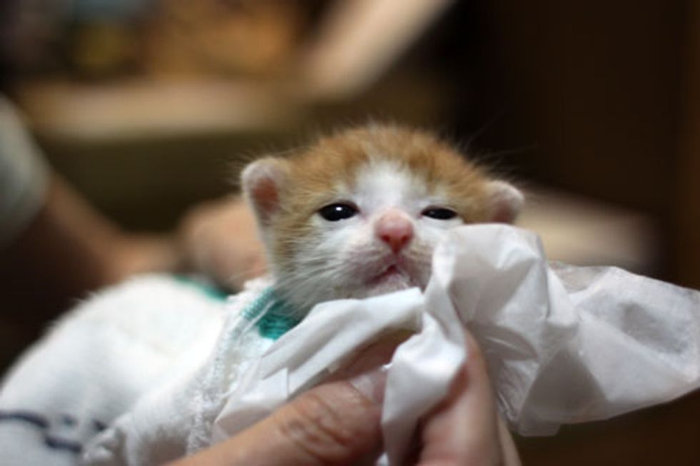 As Chobi (Nao-chan) was playing on her PC one morning, listening to the birds sing from outside, suddenly she faintly heard crying coming through her window. At first she thought it was her foster cat Wakaba playing downstairs, but then a large paper bag sitting against the wall outside by the street caught her attention.