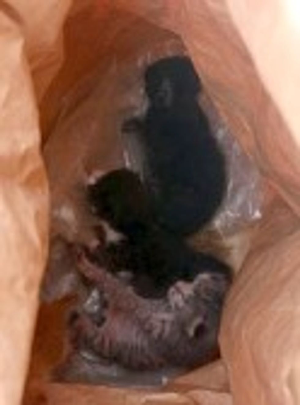She went out right away, nervous, not sure what to expect. As she stepped closer to the bag, the crying became more pronounced. Her heart was pounding, but that was not her first time dealing with this kind of situation. She openned the bag and saw four squirmy, tiny kittens screaming for life.