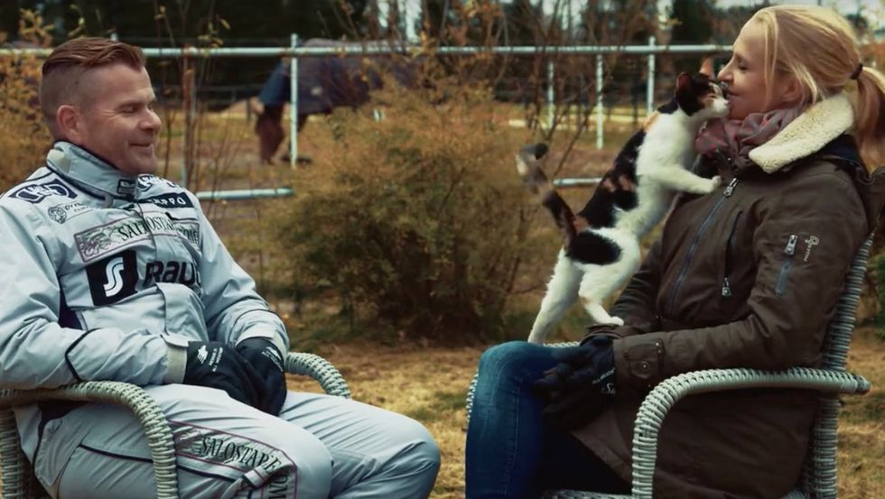 When Joanna Kuvaja, a TV show host, came to the stable to do an interview segment, the kitty quickly noticed the purrfect opportunity to show some love.
