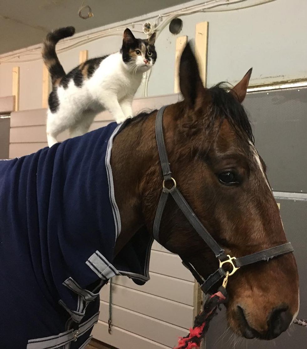 In Finland an affectionate calico cat runs a horse stable (
