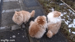 These four very floofy Traditional Persian cats are made of 80% fluff and 100% athleticism. They can leap quite impressively. Just look at that jump!