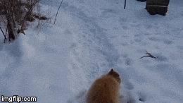 Here's Sofus chasing Da Bird in the snow. I would be very lucky to hug one of these beautiful fluffy creatures.