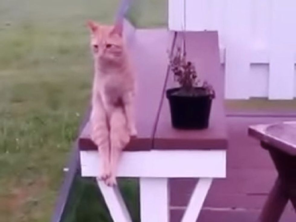"This is my cat, Red. He does this often & I'm glad I was able to video him in action," Amy wrote.