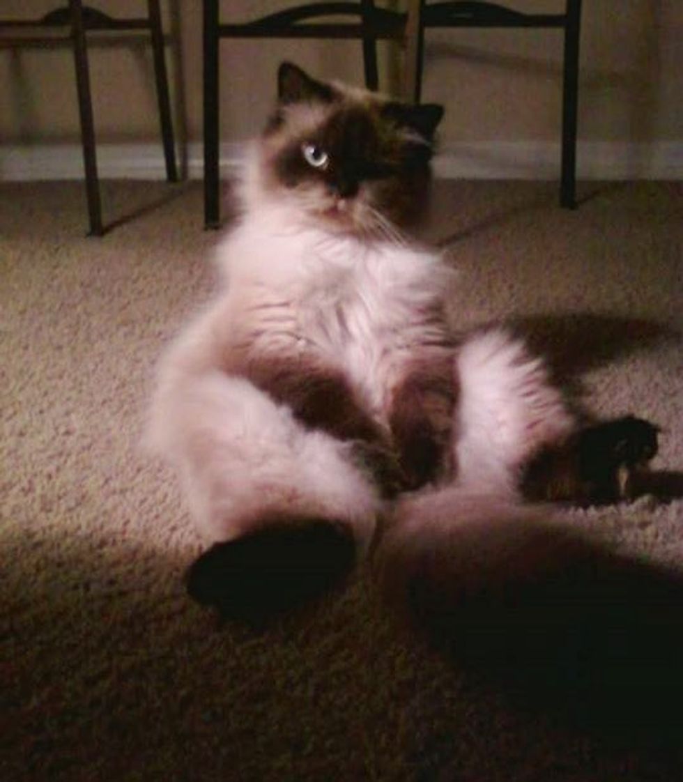 Do you have a cat that sits like a human? Share with us!