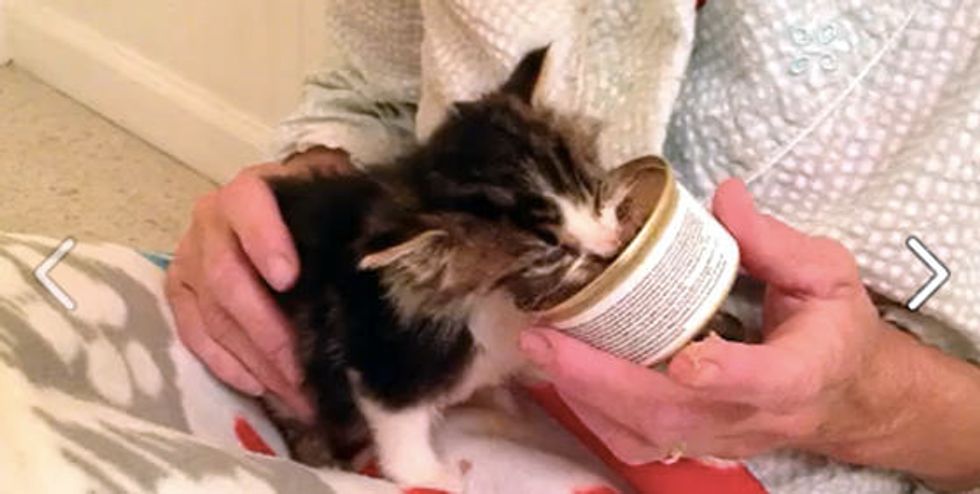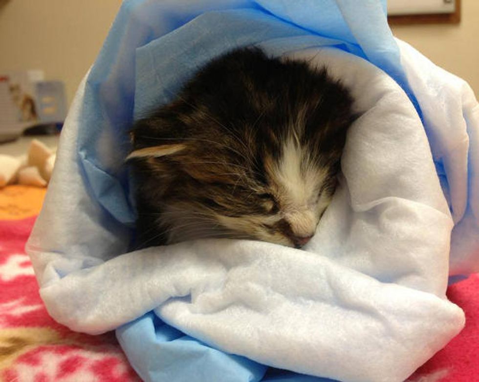 It's amazing how far he's come in the past 48 hours. With love, warmth and some food, the little kitten has got a second chance at life.
