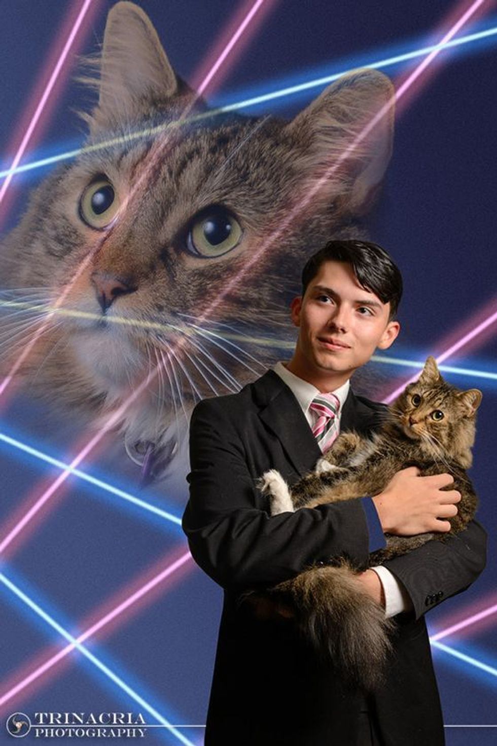 A high school student wanted to have his beloved cat Mr.Bigglesworth in his senior yearbook portrait. And he sort of got his wish.