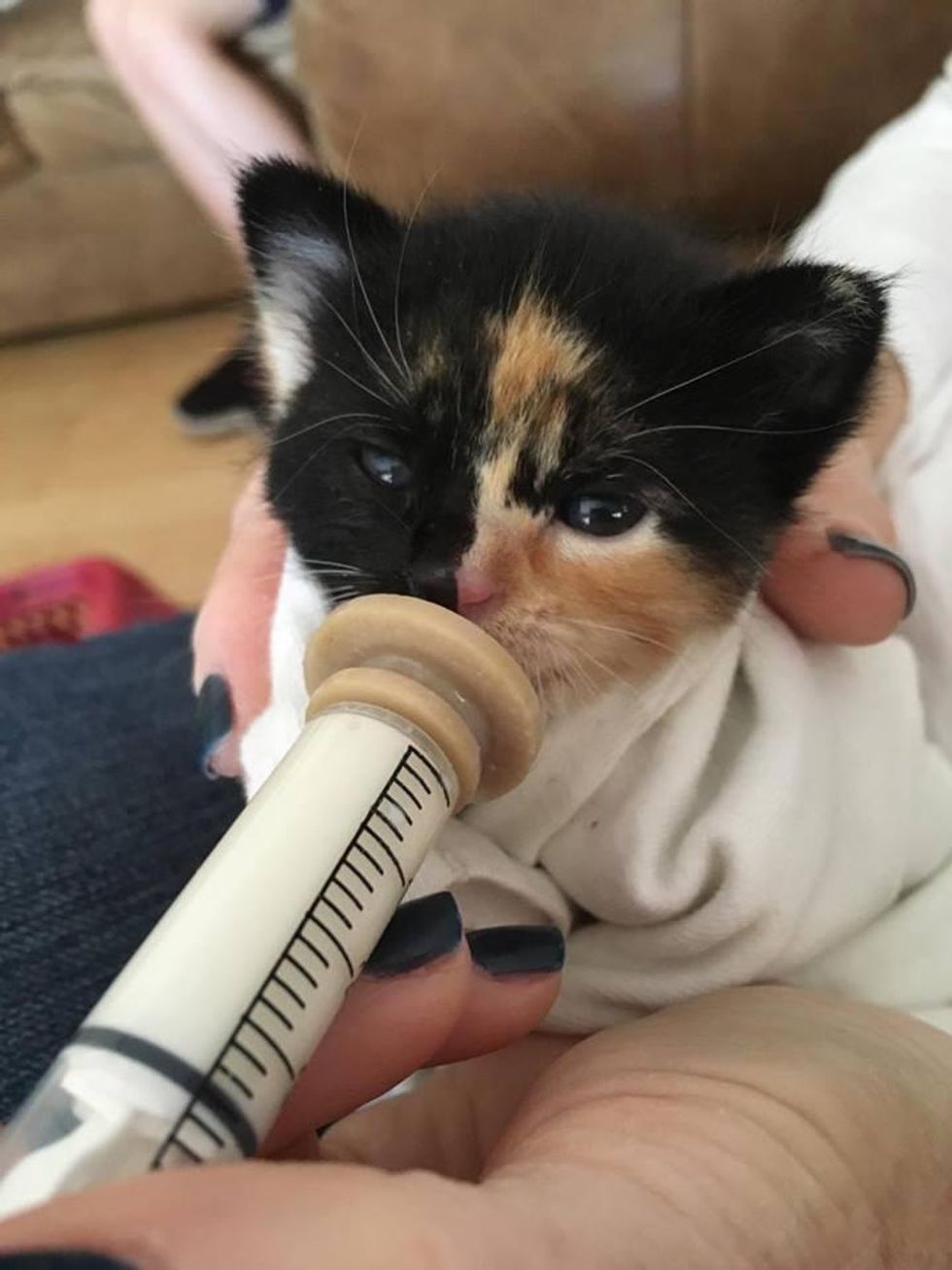 "She's doing great at drinking from the bottle. The two kittens are like sisters. It will probably be about five more weeks (until they are ready for adoption), as they only weigh .4 lb now," Julie Schaefer, foster mom, told Love Meow.