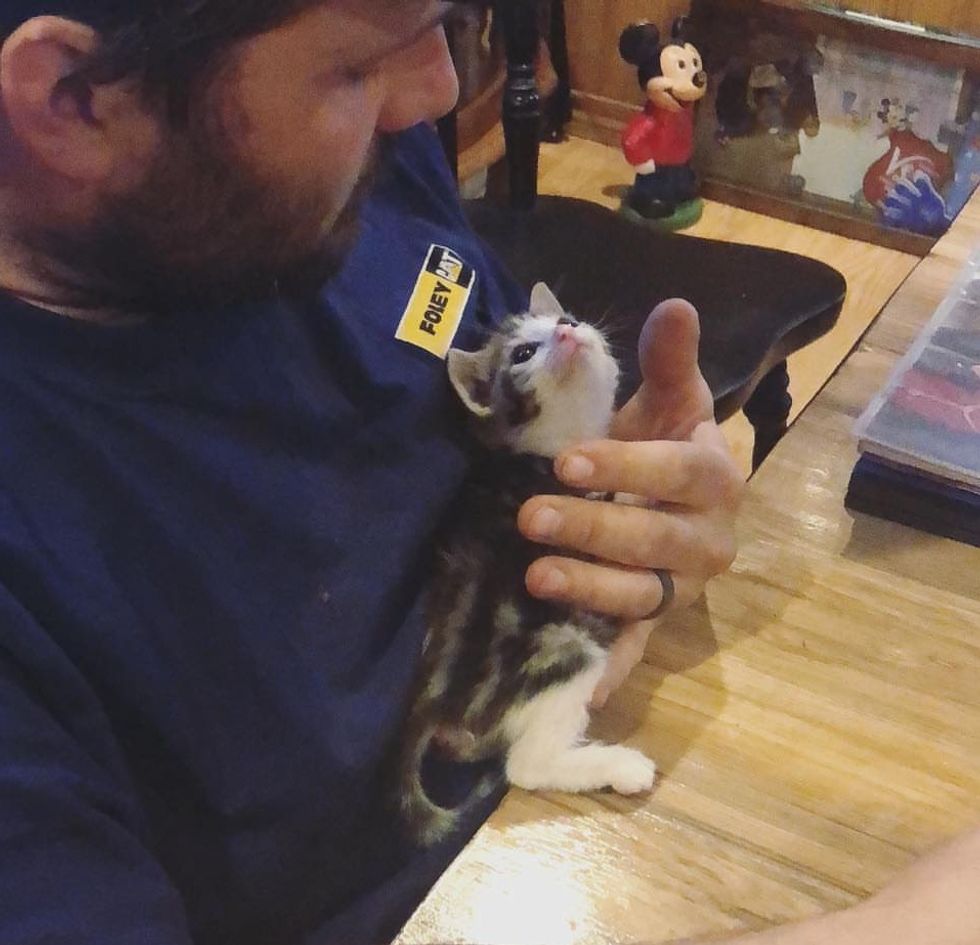 A man from New Jersey was at a job site near a port when he saw a tiny kitten fall from a machine. He rushed over, scooped him up and saved his life.