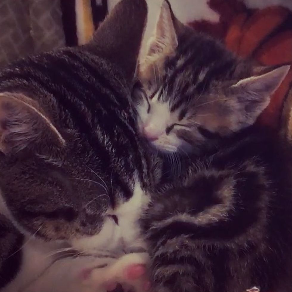"Within two days Rocky is cleaning and snuggling with them," Dawn said. "The kittens always adore him and love jumping all over him."